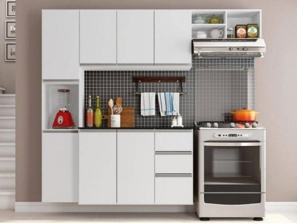 Cozinha Completa Poliman Móveis Laura - Com Balcão 8 Portas 2 Gavetas